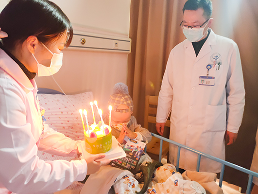 2022年,科室接診了一名重癥肺炎患兒,萬(wàn)鴻在查房時(shí)發(fā)現(xiàn)患兒情緒不高,打聽(tīng)后得知當(dāng)天是患兒的生日,擔(dān)心住院不能過(guò)生日而悶悶不樂(lè)。了解情況后,萬(wàn)鴻和科室人員立即“行動(dòng)”起來(lái),購(gòu)買蛋糕、氣球……當(dāng)蠟燭點(diǎn)亮、生日歌響起時(shí),患兒的臉上露出了歡快的笑容。