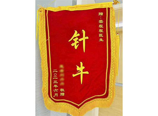 送錦旗的劉女士長期以來飽受頸椎病折磨,常常半夜疼醒,對(duì)她的工作和生活造成了極大影響。在朋友的介紹下,劉女士來到市婦幼保健院找到欒程程進(jìn)行針灸治療。短短幾次,頸椎疼痛的癥狀便明顯減輕,更讓劉女士驚喜的是長期以來的失眠問題也得到極大緩解。為表達(dá)自己的感激之情,劉女士送上這面“針?!钡腻\旗。
