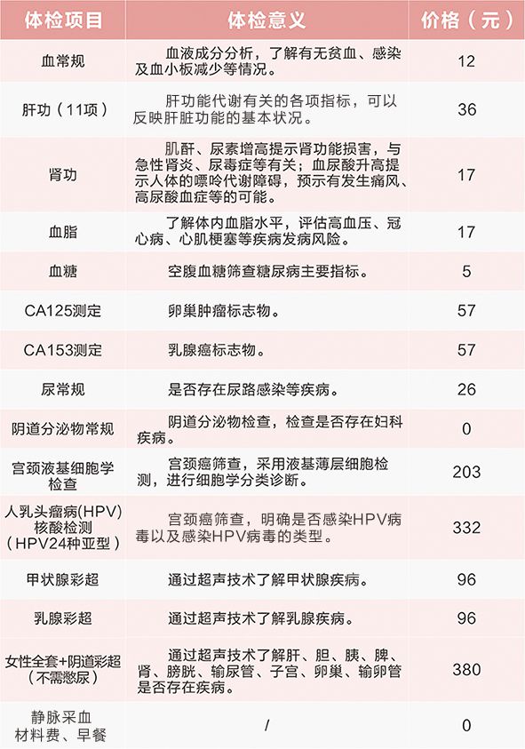 套餐一 未婚女性體檢套餐【原價(jià)715元,優(yōu)惠價(jià)536元,贈(zèng)送體檢項(xiàng)目:血沉、靜脈采血】