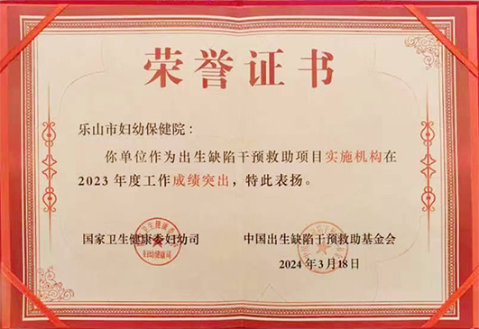 樂山市婦幼保健院(項目實施機構(gòu))榮獲表揚