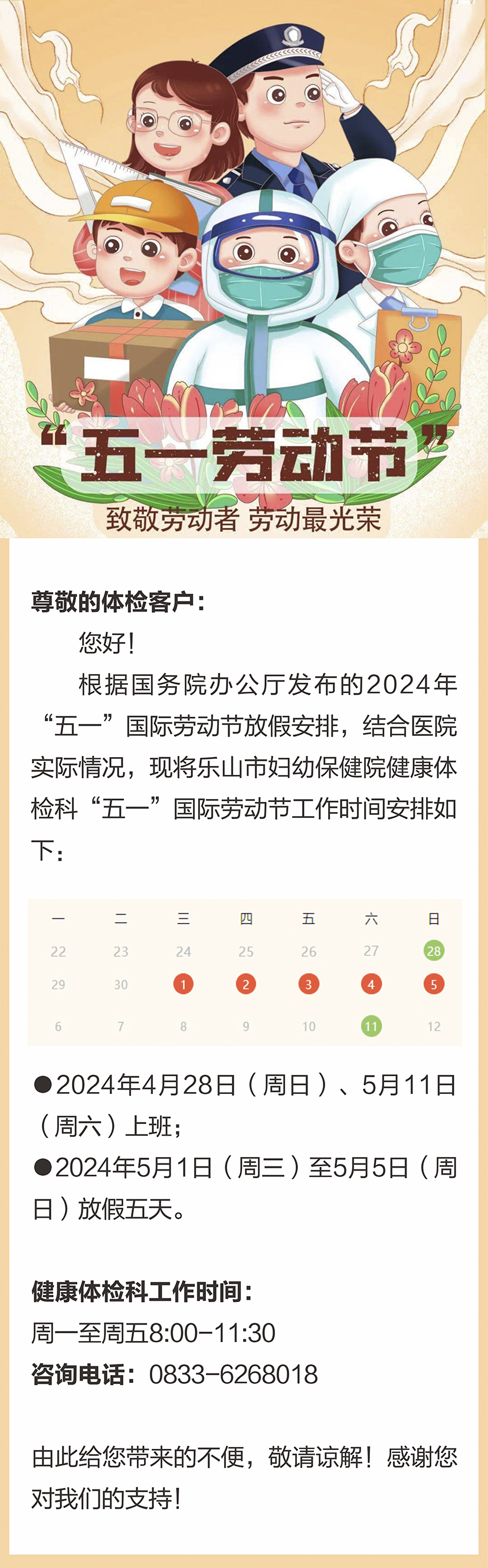 【“醫(yī)”路相伴】2024年健康體檢科“五一”國際勞動節(jié)放假通知