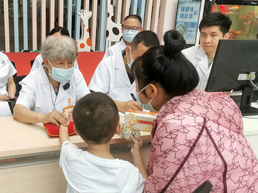 曾教授雖已90歲高齡,依然耳聰目明、精神矍鑠,她認真聆聽每一位患兒家長對孩子病情的描述,詳細詢問孩子的飲食、睡眠、運動等生活習慣并仔細把脈,依據(jù)孩子的具體情況制定治療方案。義診中,曾教授不忘帶教學生,以現(xiàn)場案例進行講解,并將自己多年的診療經(jīng)驗傾囊相授。