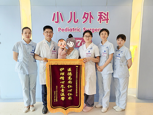 術(shù)后的小熙立即被送至重癥病房給予呼吸機(jī)支持、抗感染、營養(yǎng)支持等治療。經(jīng)過4天的精心救治與護(hù)理,小熙的身體逐漸恢復(fù),轉(zhuǎn)入普通病房繼續(xù)治療。9月14日,小熙不僅能夠正常喝奶進(jìn)食,還能牽著媽媽的手在病房里開心地走來走去,一家人愉快地收拾東西準(zhǔn)備出院。至此,這場(chǎng)與時(shí)間賽跑的生死營救終于畫上了完美句號(hào)。