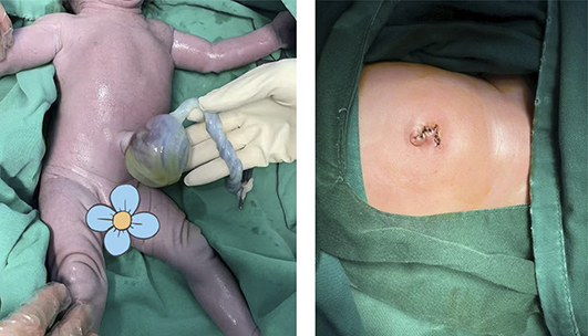 臍膨出是一種嚴(yán)重的先天性腹壁發(fā)育缺陷,表現(xiàn)為患兒臍部有一凸出的囊狀物,內(nèi)容物為腸管等腹腔器官,如不及時(shí)治療可能引發(fā)囊膜破裂后腹腔器官脫出,造成壞死、感染,危及患兒生命。產(chǎn)科、小兒外科、新生兒科、超聲科等多學(xué)科團(tuán)隊(duì)在產(chǎn)前就對胎兒進(jìn)行定期監(jiān)測和指導(dǎo),動(dòng)態(tài)評估胎兒情況的同時(shí),安撫減輕家屬的焦慮。該例患兒的成功救治充分展現(xiàn)了醫(yī)院近年來開展胎兒結(jié)構(gòu)畸形多學(xué)科一體化診療的技術(shù)實(shí)力。
