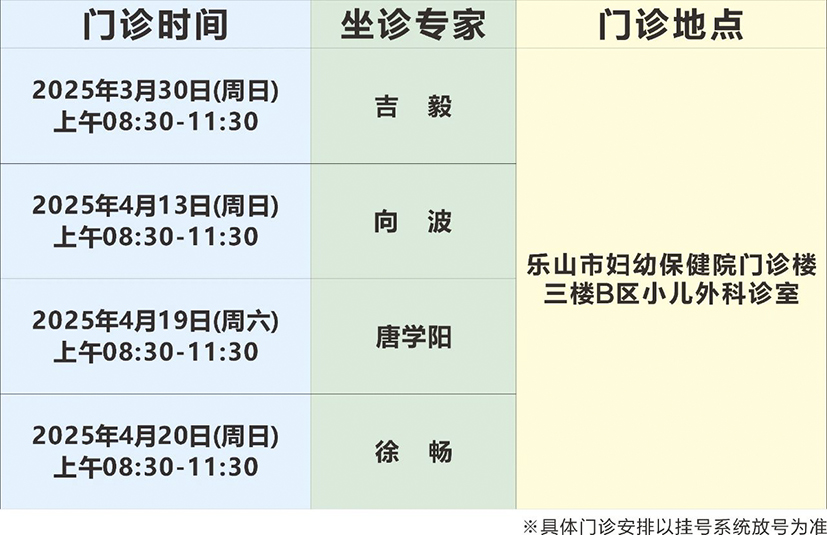現(xiàn)在,華西小兒外科專家團隊已入駐樂山市婦幼保健院!每周末,華西小兒外科專家輪流坐診,家長們再也不用擔心來回奔波,小朋友們也可以不出樂山就能享受到華西頂尖專家的診療服務。