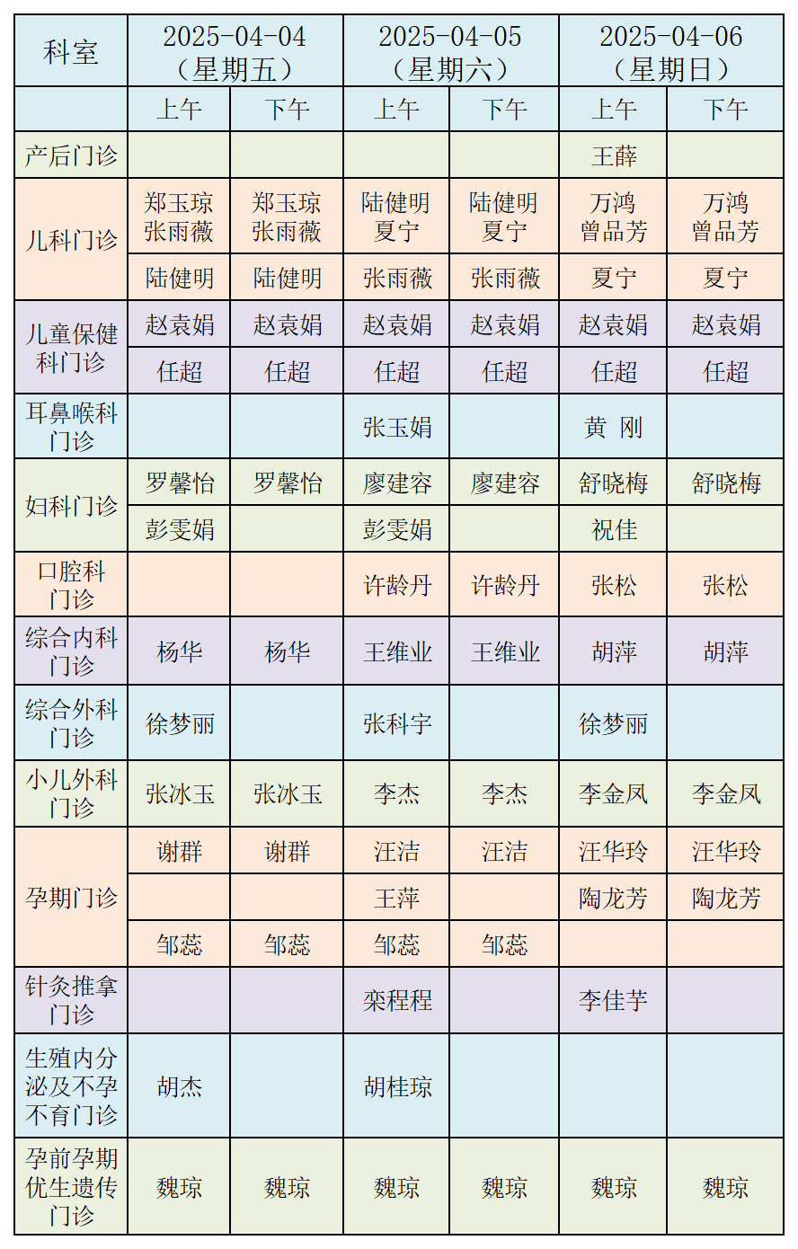 清明時(shí)節(jié),春暖花開(kāi)。為保障節(jié)日期間廣大婦女兒童就醫(yī)需求,樂(lè)山市婦幼保健院門診、急診均正常開(kāi)放,各科室醫(yī)護(hù)人員堅(jiān)守崗位,為您和家人的健康保駕護(hù)航?,F(xiàn)將2025年清明假期(4月4日—4月6日)門診坐診公告如下: