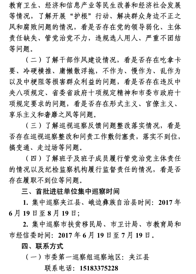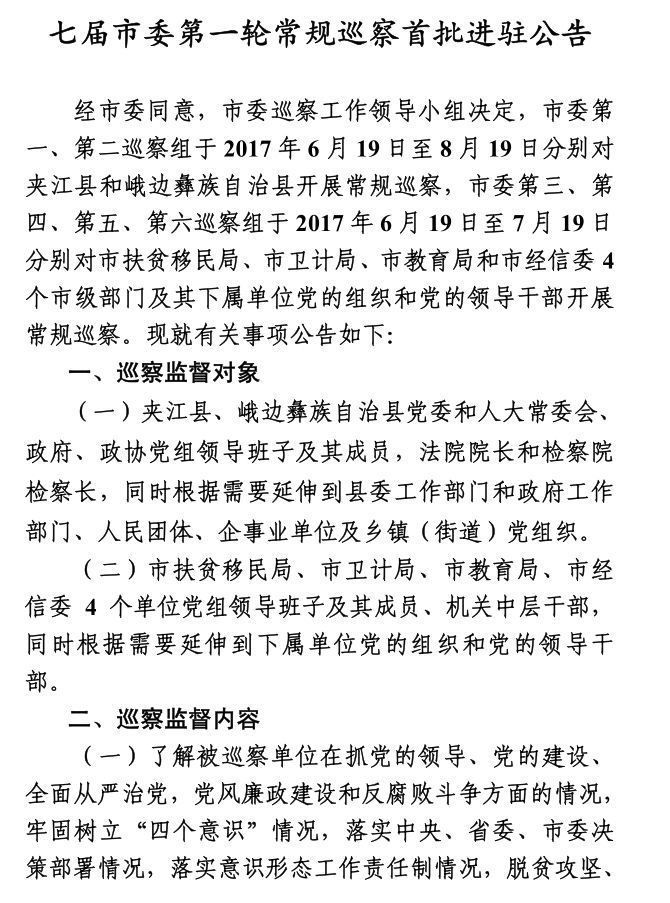 七屆市委第一輪巡察首批進駐公告