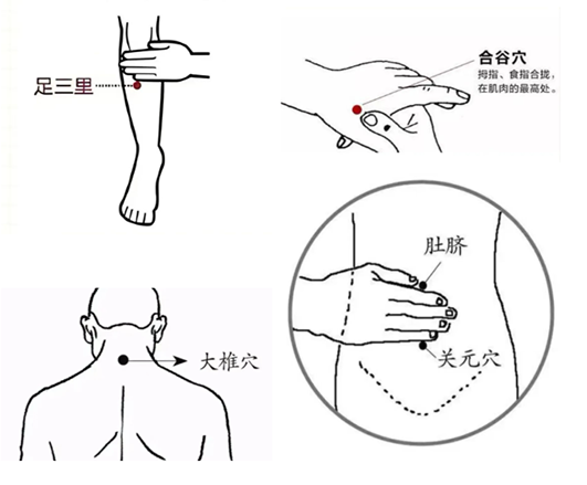 1.足三里(小腿外側(cè),膝蓋下3寸)——補氣養(yǎng)血,增強抵抗力。