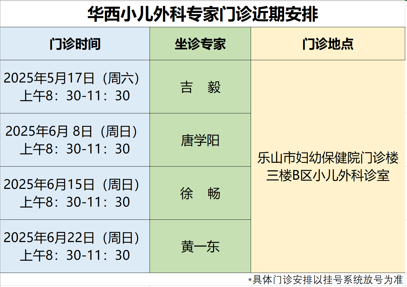 現(xiàn)在,華西小兒外科專家團隊已入駐樂山市婦幼保健院!每周末,華西小兒外科專家輪流坐診,家長們再也不用擔(dān)心來回奔波,小朋友們也可以不出樂山就能享受到華西頂尖專家的診療服務(wù)。