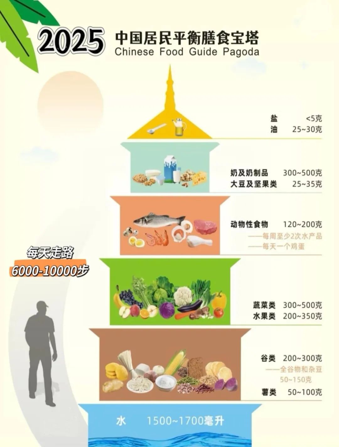 中國營養(yǎng)學會推出的"膳食寶塔"為我們提供了科學的飲食結(jié)構(gòu)指南。這個五層寶塔底部是谷物薯類,建議每天攝入250-400克;往上是蔬菜水果層,每日300-500克蔬菜和200-350克水果;第三層是魚禽肉蛋等動物性食品,每日120-200克;第四層是乳制品和大豆堅果,相當于每天液態(tài)奶300克;塔尖是油鹽,食用油25-30克,鹽不超過5克。