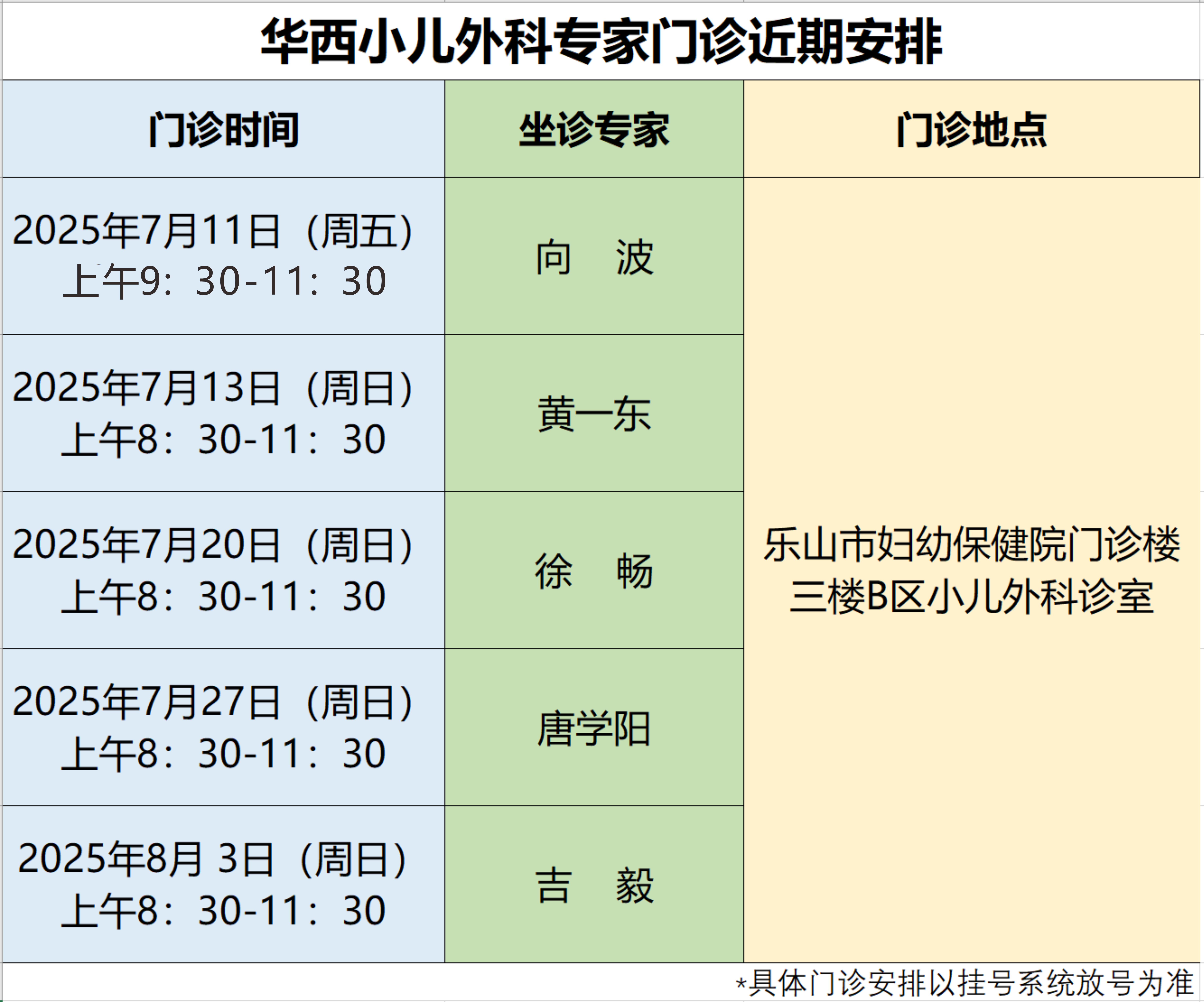 現(xiàn)在,華西小兒外科專家團隊已入駐樂山市婦幼保健院!每周末,華西小兒外科專家輪流坐診,家長們再也不用擔心來回奔波,小朋友們也可以不出樂山就能享受到華西頂尖專家的診療服務。