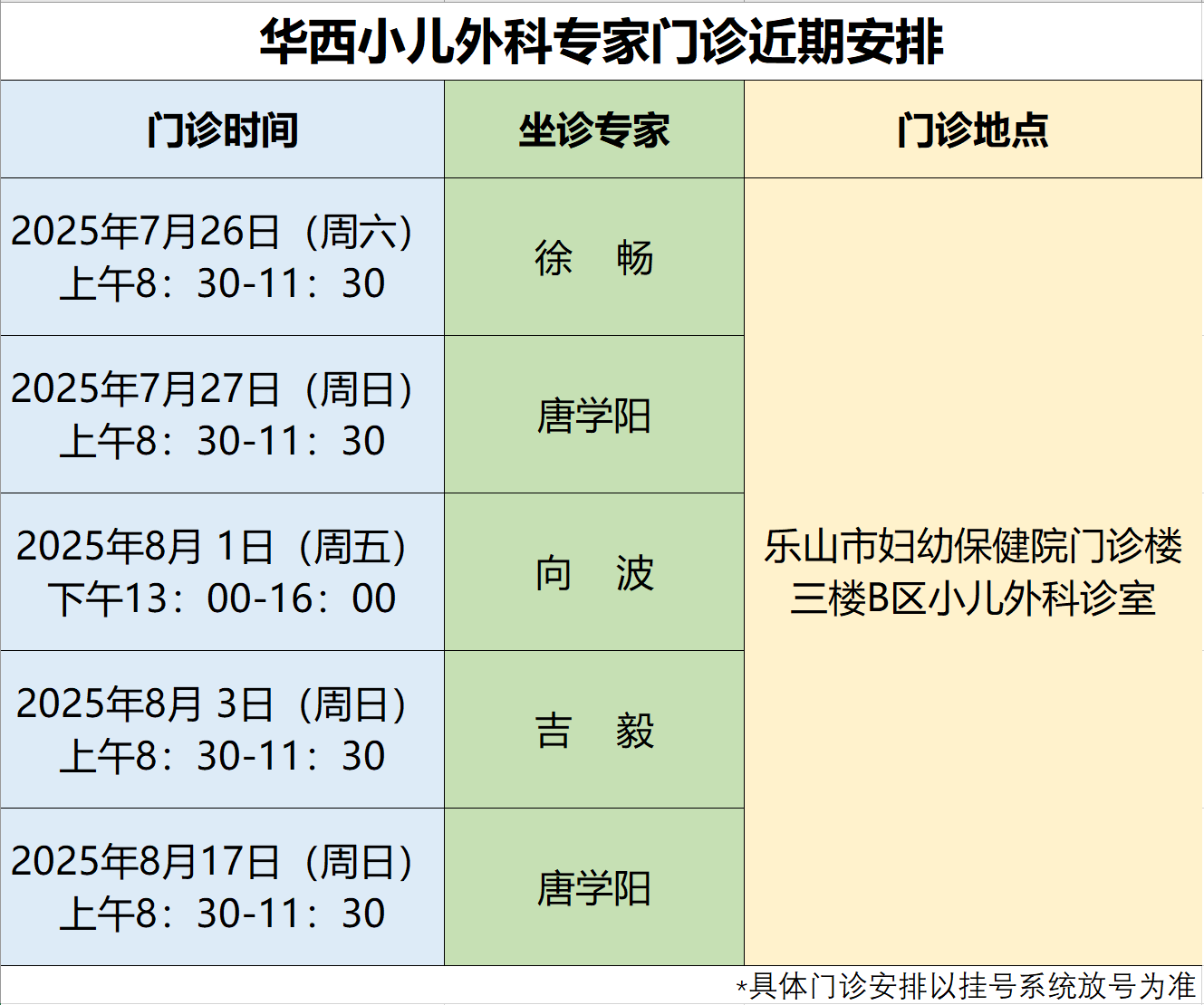 現(xiàn)在,華西小兒外科專家團隊已入駐樂山市婦幼保健院!每周末,華西小兒外科專家輪流坐診,家長們再也不用擔(dān)心來回奔波,小朋友們也可以不出樂山就能享受到華西頂尖專家的診療服務(wù)。