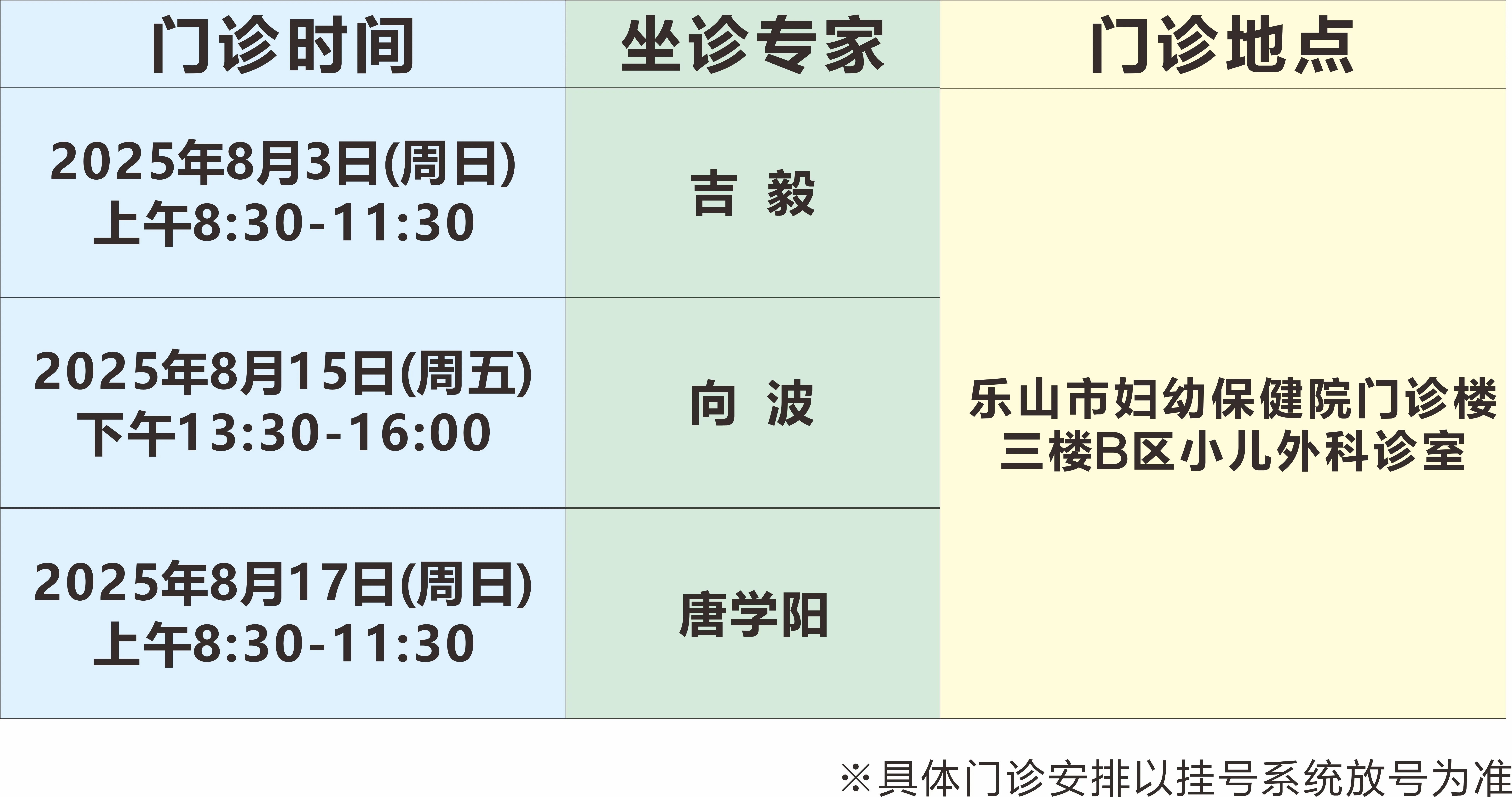 現(xiàn)在,華西小兒外科專(zhuān)家團(tuán)隊(duì)已入駐樂(lè)山市婦幼保健院!每周末,華西小兒外科專(zhuān)家輪流坐診,家長(zhǎng)們?cè)僖膊挥脫?dān)心來(lái)回奔波,小朋友們也可以不出樂(lè)山就能享受到華西頂尖專(zhuān)家的診療服務(wù)。