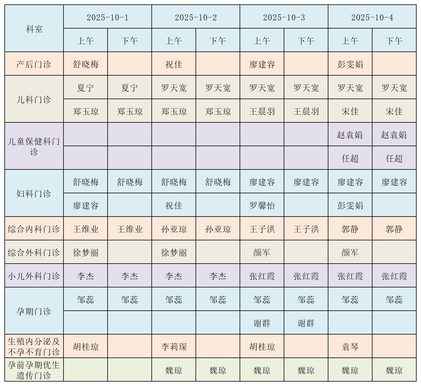 【“醫(yī)”路相伴】市婦幼保健院:國慶節(jié)、中秋節(jié)假期門診排班表來啦