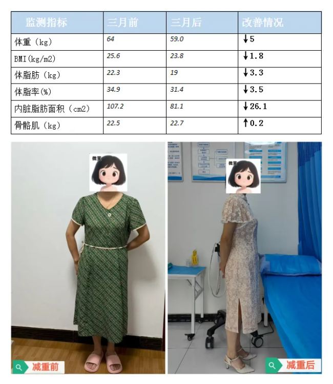 志愿者們不僅在體重、體脂等身體指標上取得進一步優(yōu)化,更在整體健康狀態(tài)上實現(xiàn)多維度提升——睡眠改善、腸胃舒適、皮膚變好、自信心增強……這些積極變化,正是科學減重帶來的可持續(xù)的健康生活習慣。下面,就讓我們用數(shù)據(jù)見證四位志愿者的健康蛻變。