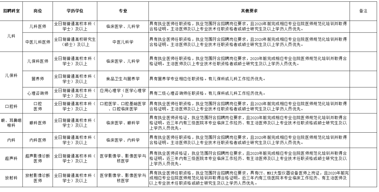 關于2020年下半年自主招聘編外臨床專業(yè)工作