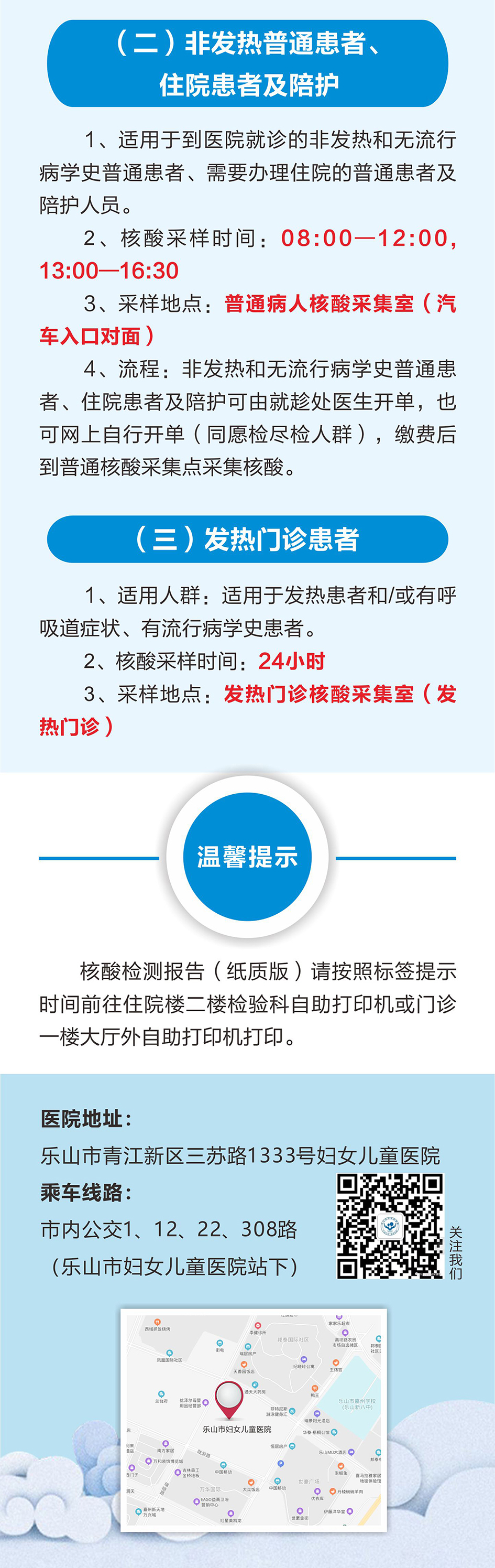 醫(yī)院地址:樂山市青江新區(qū)三蘇路1333號和瑞晗路1199號 乘車路線:市內(nèi)公交車1路、12路、22路、308路(樂山市婦女兒童醫(yī)院站下車)