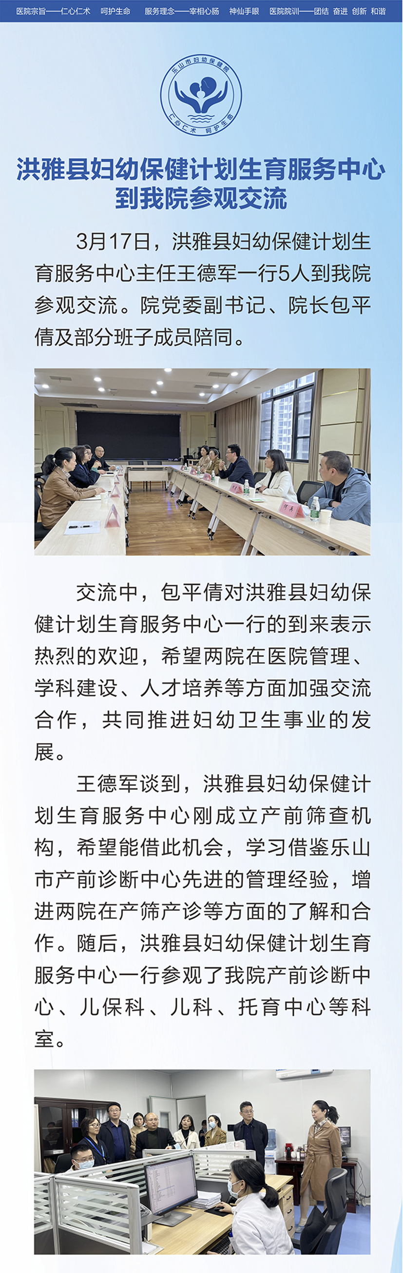 洪雅縣婦幼保健計劃生育服務中心到我院參觀交流