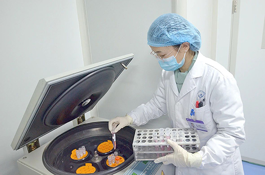 “回想當初,醫(yī)院還在老院址學道街,地狹人密設施陳舊。經(jīng)反復論證,醫(yī)院最終在行政樓擠出300㎡的業(yè)務用房,產(chǎn)診實驗室才得以安了家?!焙娊榻B說,為快速提升檢驗水平,科室人員爭分奪秒,甚至把簡易行軍床搬到了實驗室。就這樣在科室人員孜孜不倦的鉆研和市婦幼保健院的大力支持下,樂山市產(chǎn)前診斷機構(gòu)技術水平不斷提升,最終被確立為四川省產(chǎn)前診斷中心樂山分中心。