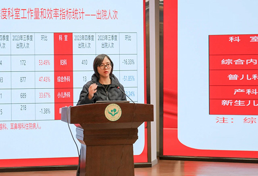 黨委副書記、院長包平倩對(duì)我院2023年四季度業(yè)務(wù)運(yùn)行情況進(jìn)行通報(bào),并從堅(jiān)持和加強(qiáng)黨的領(lǐng)導(dǎo)、著力提升行政管理效能、全面提升醫(yī)療管理質(zhì)量等七個(gè)方面,對(duì)2023年度醫(yī)院工作進(jìn)行總結(jié)回顧,并安排部署2024年重點(diǎn)工作。