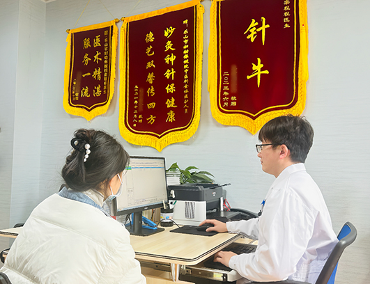 來(lái)到中醫(yī)科時(shí),已臨近下班時(shí)間,診室外仍有多名患者在候診。診室內(nèi),欒程程耐心地與患者溝通,認(rèn)真傾聽患者對(duì)身體狀況的描述,并根據(jù)實(shí)際情況給予“一對(duì)一”的指導(dǎo)。