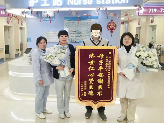 6點17分,產(chǎn)房里傳來嬰兒響亮的啼哭聲,吳女士平安產(chǎn)下一名男嬰。等待在產(chǎn)房外的吳女士愛人得知母子平安時,喜極而泣。為感謝喻云倩及產(chǎn)科醫(yī)護人員的辛勞付出和精心呵護,吳女士愛人送上寫有“母子平安謝醫(yī)術 濟世仁心贊醫(yī)德”的錦旗,表達一家人的感激之情。