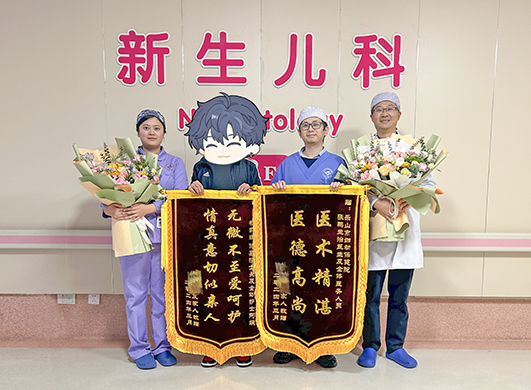 “醫(yī)護(hù)人員的精心照護(hù)讓我們感動(dòng)不已,每天他們都會(huì)電話告訴我們寶寶的最新情況,讓我們?cè)趽?dān)憂中多了一絲溫情?!标柵空f道,為表達(dá)對(duì)新生兒科醫(yī)護(hù)人員的感激之情,今天,我和愛人專門為新生兒科的醫(yī)護(hù)團(tuán)隊(duì)送上錦旗。