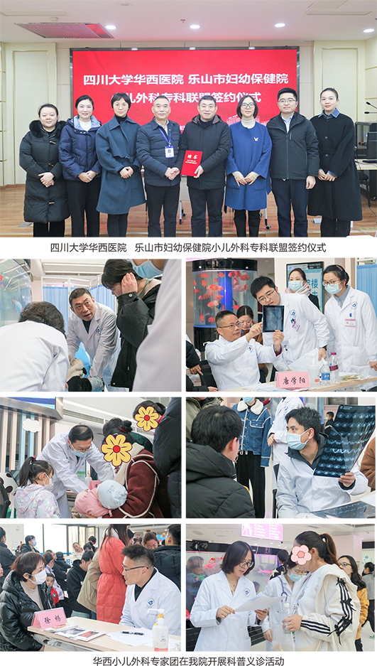 與四川大學(xué)華西醫(yī)院小兒外科簽署??坡?lián)盟協(xié)議,聘任華西小兒外科向波主任為我院小兒外科學(xué)術(shù)主任,并攜同唐學(xué)陽、黃一東、吉毅、徐暢,五位專家每周輪流來院坐診指導(dǎo),搭建市民優(yōu)質(zhì)醫(yī)療資源共享平臺。