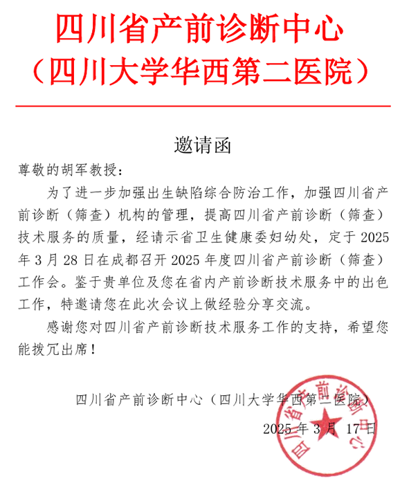 基于樂(lè)山市產(chǎn)前診斷中心在技術(shù)及管理領(lǐng)域的突出表現(xiàn),2025年3月28日,我院胡軍主任特別受邀在“2025年度四川省產(chǎn)前診斷(篩查) 工作會(huì)”上作經(jīng)驗(yàn)交流。胡軍在專題報(bào)告中分享了我市產(chǎn)診中心在技術(shù)流程方面的優(yōu)化、質(zhì)控體系建設(shè)等方面的實(shí)踐經(jīng)驗(yàn),獲得與會(huì)專家高度評(píng)價(jià)。