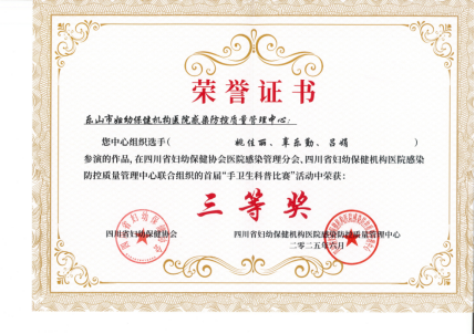 6月11日,四川省婦幼保健協(xié)會第六屆(2025 年)婦幼感染預(yù)防與控制學(xué)術(shù)年會上舉行了2025 年手衛(wèi)生科普比賽,由樂山市婦幼保健機(jī)構(gòu)醫(yī)院感染防控質(zhì)量管理分中心選送的樂山市婦幼保健院參賽隊(duì)手衛(wèi)生科普作品《衛(wèi)愛手護(hù),健康童行》,榮獲三等獎。