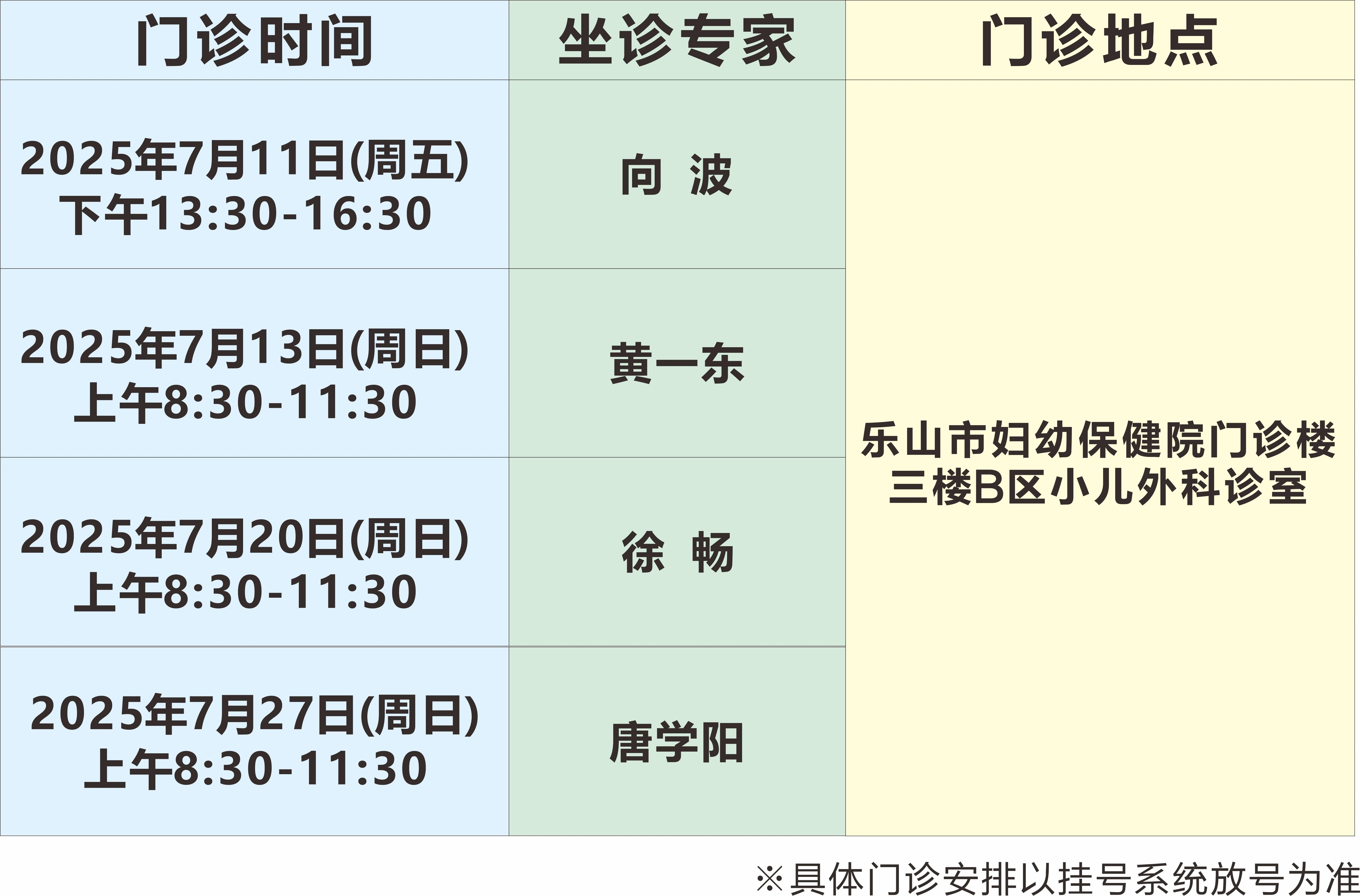 現(xiàn)在,華西小兒外科專(zhuān)家團(tuán)隊(duì)已入駐樂(lè)山市婦幼保健院!每周末,華西小兒外科專(zhuān)家輪流坐診,家長(zhǎng)們?cè)僖膊挥脫?dān)心來(lái)回奔波,小朋友們也可以不出樂(lè)山就能享受到華西頂尖專(zhuān)家的診療服務(wù)。