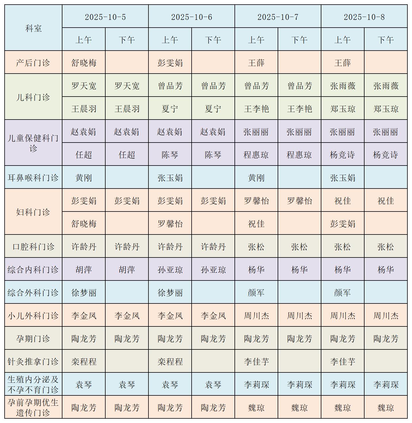 【“醫(yī)”路相伴】市婦幼保健院:國(guó)慶節(jié)、中秋節(jié)假期門診排班表來(lái)啦