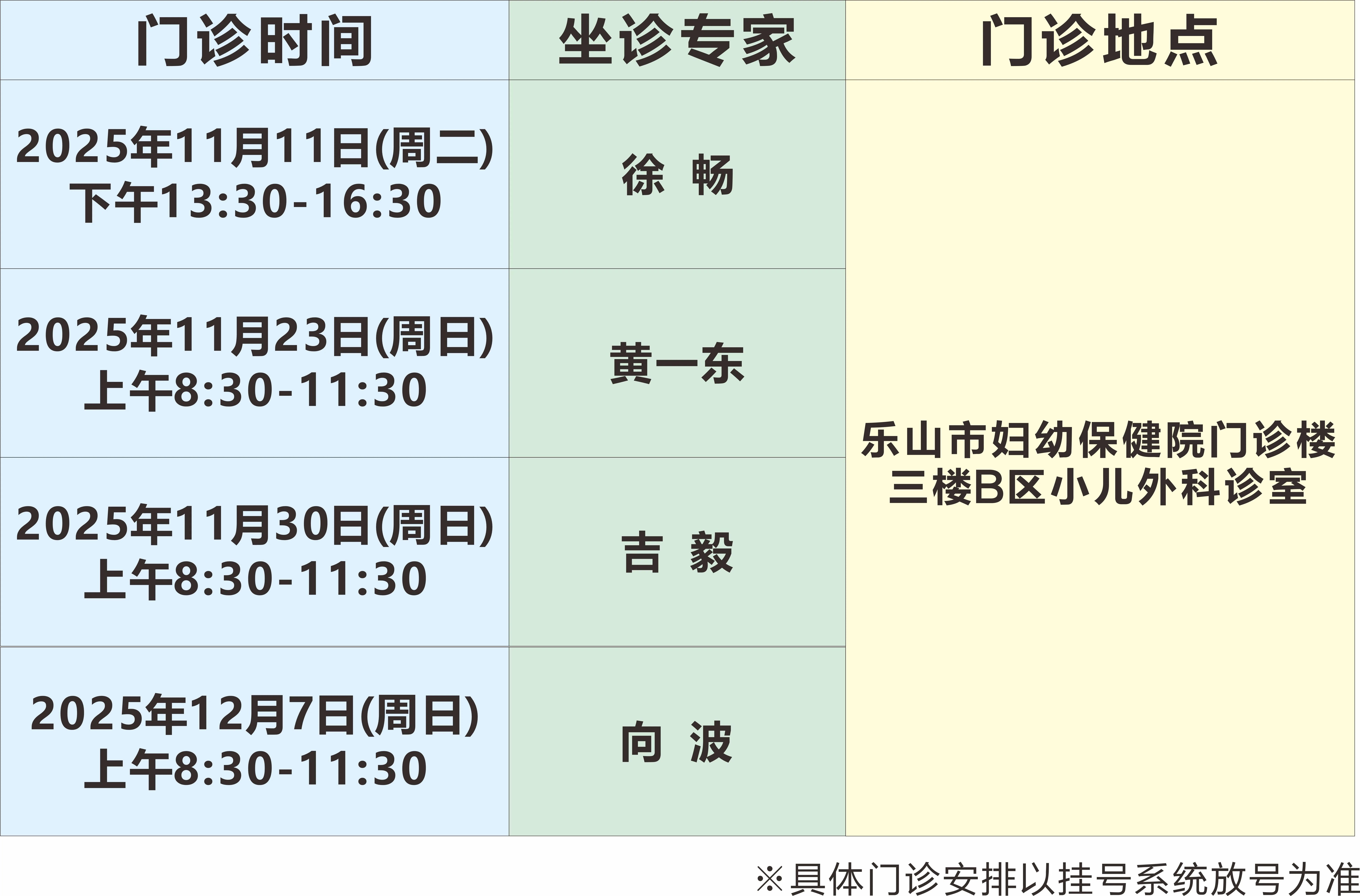 現(xiàn)在,華西小兒外科專家團隊已入駐樂山市婦幼保健院!每周末,華西小兒外科專家輪流坐診,家長們再也不用擔心來回奔波,小朋友們也可以不出樂山就能享受到華西頂尖專家的診療服務(wù)。