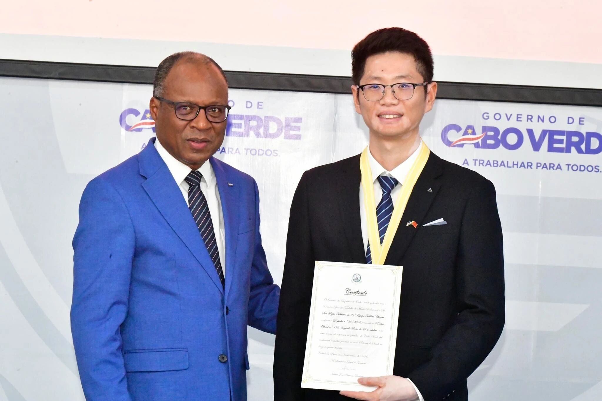 工作之余,孫思喆還和隊友們積極充當(dāng)文化傳播者,主動聯(lián)系當(dāng)?shù)卣?、中資機構(gòu)開展巡診、義診活動,把優(yōu)質(zhì)的醫(yī)療服務(wù)送到群眾身邊。2024年10月25 日,為表彰 40 年來中國援佛得角醫(yī)療隊的杰出貢獻(xiàn),佛得角政府向中國援佛醫(yī)療隊授予國家級榮譽勛章,這枚勛章不僅是對醫(yī)療隊工作的肯定,更是中非友誼的見證。