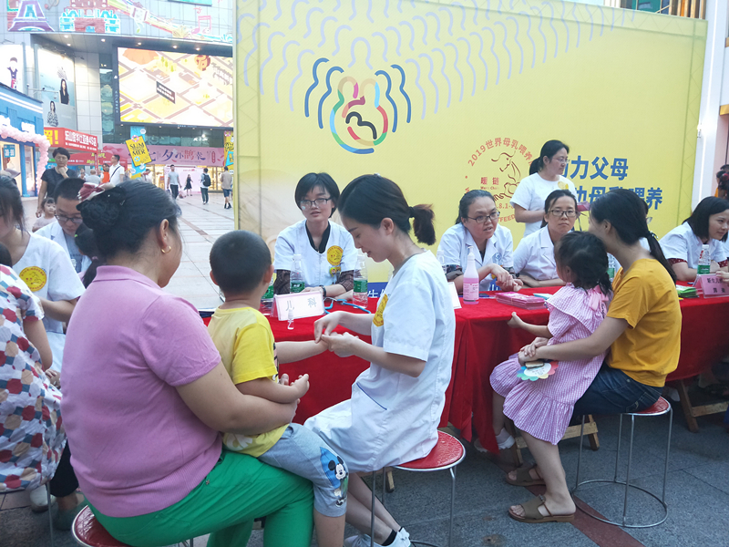 一是開展大型戶外宣傳。8月6日下午19時(shí),我院在人口流動(dòng)較多的嘉瑞財(cái)富廣場,以“助力父母,成功母乳喂養(yǎng)”為主題,開展義診、義檢、咨詢等活動(dòng)。兒科、兒童保健、小兒推拿按摩、產(chǎn)前診斷、產(chǎn)后康復(fù)等相關(guān)科室醫(yī)護(hù)人員30余人參加了宣傳活動(dòng)。活動(dòng)期間,醫(yī)務(wù)人員佩戴“2019年世界母乳喂養(yǎng)周”胸貼,營造了良好的愛嬰愛母社會(huì)氛圍。開展面對面咨詢、一對一的母乳喂養(yǎng)技巧示教,主動(dòng)熱情為咨詢?nèi)罕娭v解母乳喂養(yǎng)的好處、母乳喂養(yǎng)的相關(guān)知識、孕產(chǎn)期及產(chǎn)后的保健知識。發(fā)放《母乳喂養(yǎng)知識》宣傳資料500余份,活動(dòng)現(xiàn)場接受咨詢和義診、義檢群眾近400人次,以及免費(fèi)小兒推拿20余人次;樂山電視臺《新聞天天報(bào)》、《樂山新聞網(wǎng)》、樂山廣播電視報(bào)對此次宣傳活動(dòng)進(jìn)行了現(xiàn)場采訪。我院院長助理、婦幼健康管理部部長漆巍在接受記者采訪時(shí)談到,“經(jīng)過多年的宣教、引導(dǎo)、灌輸,目前我市的純母乳喂養(yǎng)率從2008年的74.56%上升到2018年的80.02%,雖已達(dá)到中國兒童發(fā)展綱要(2011-2020年)的要求,但是,倡導(dǎo)母乳喂養(yǎng)的道路還很漫長,我們希望通過母乳喂養(yǎng)周活動(dòng),以及愛嬰醫(yī)院落實(shí)和推進(jìn)母乳喂養(yǎng)的倡議,讓更多的母親和嬰兒都獲得持續(xù)、滿意、有效的母乳喂養(yǎng),最終讓更多的群體實(shí)現(xiàn)母乳喂養(yǎng)?!?/span>