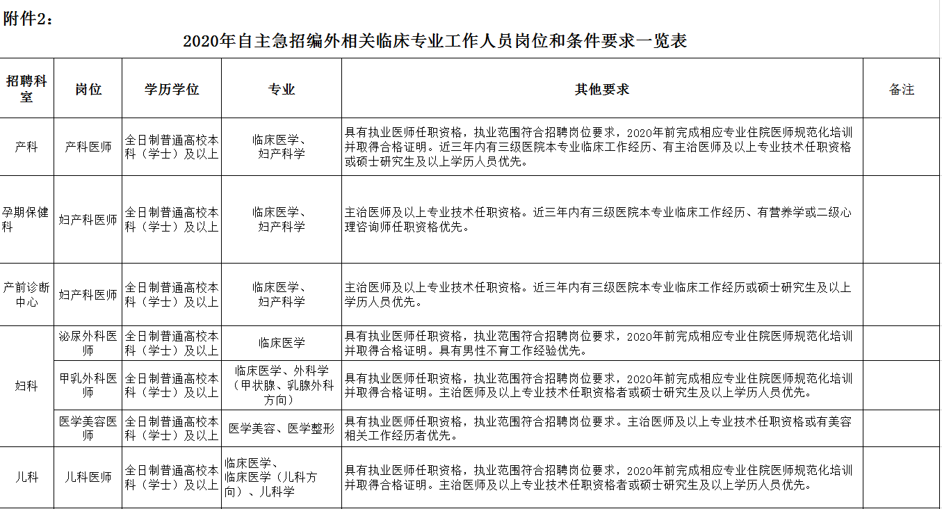 2、2020年自主急招編外相關臨床專業(yè)工作人員崗位和條件要求一覽表
