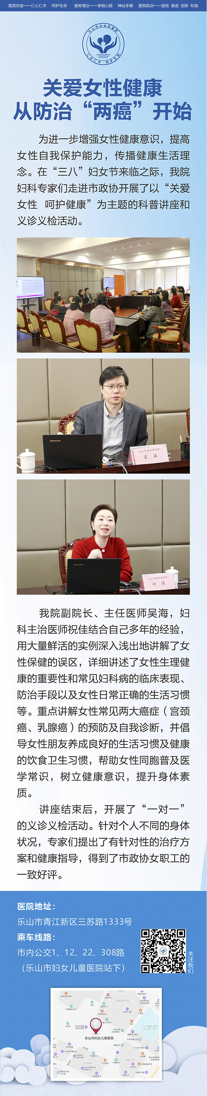醫(yī)院地址:樂山市青江新區(qū)三蘇路1333號和瑞晗路1199號 乘車路線:市內(nèi)公交車1路、12路、22路、308路(樂山市婦女兒童醫(yī)院站下車)
