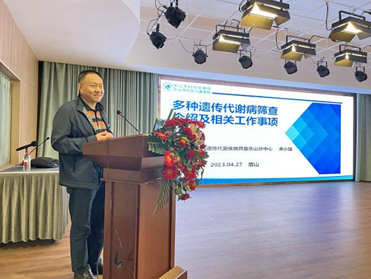 為進一步加強眉山市新生兒疾病篩查工作的管理,規(guī)范服務(wù)流程、提高新篩服務(wù)能力,擴大新生兒遺傳代謝病篩查病種,應(yīng)四川大學(xué)華西第二醫(yī)院眉山市婦女兒童醫(yī)院、眉山市婦幼保健院的邀請,我院新篩中心余小雄、曾品芳、王銳等專家于2023年4月27日赴眉山市三蘇賓館,為醫(yī)療保健機構(gòu)新生兒遺傳代謝疾病篩查管理人員、采血人員、新篩辦項目管理人員等約116余人,開展新生兒遺傳代謝疾病篩查培訓(xùn)授課。