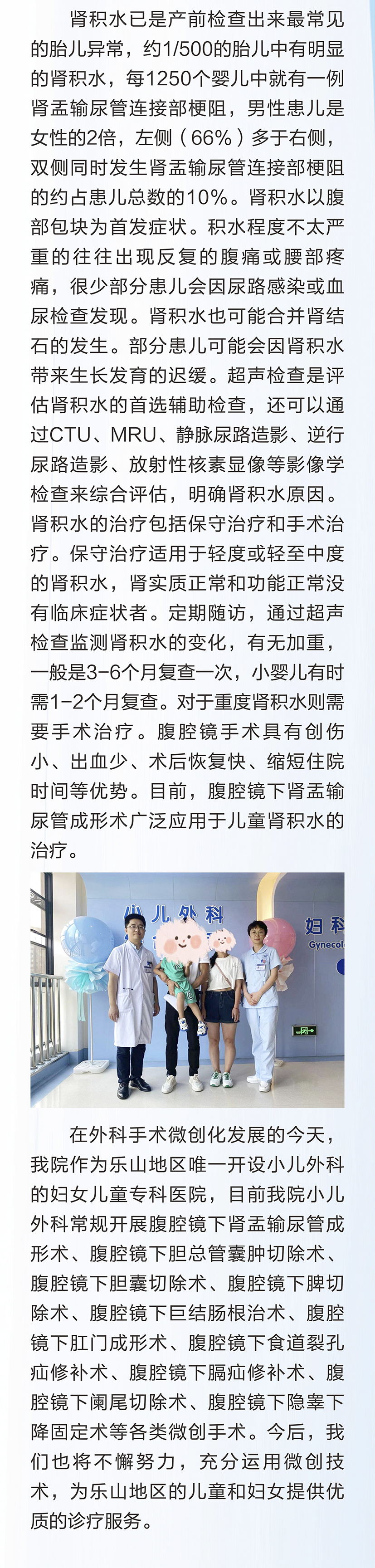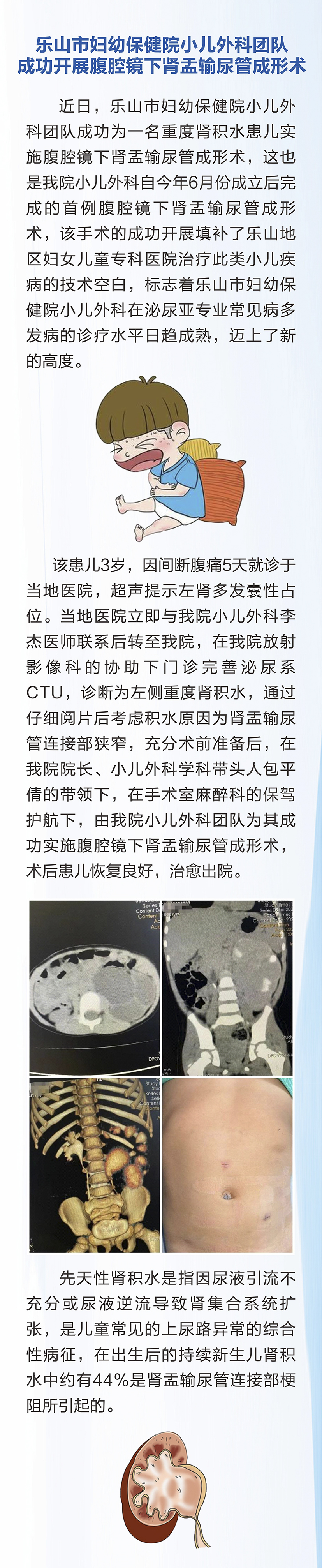 【“醫(yī)”心“醫(yī)”意】樂山市婦幼保健院小兒外科團隊成功開展腹腔鏡下腎盂輸尿管成形術(shù)