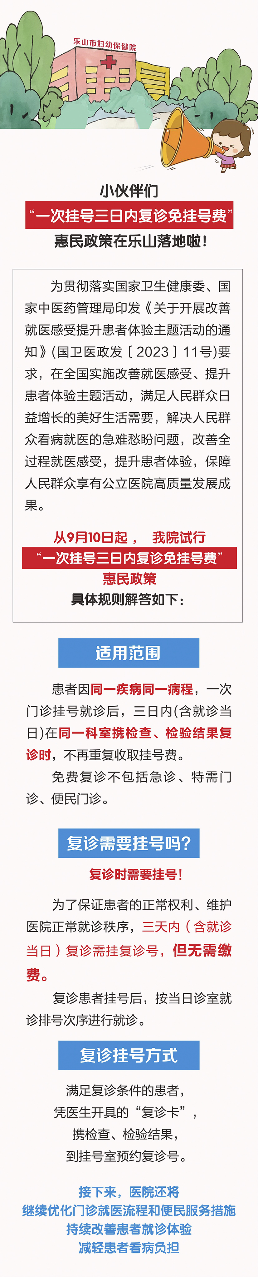 號外!號外!樂山市婦幼保健院門診“一次掛號管三天”啦!