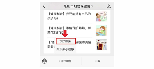 二、搜索“樂山市婦幼保健院”,點擊“醫(yī)療服務”。