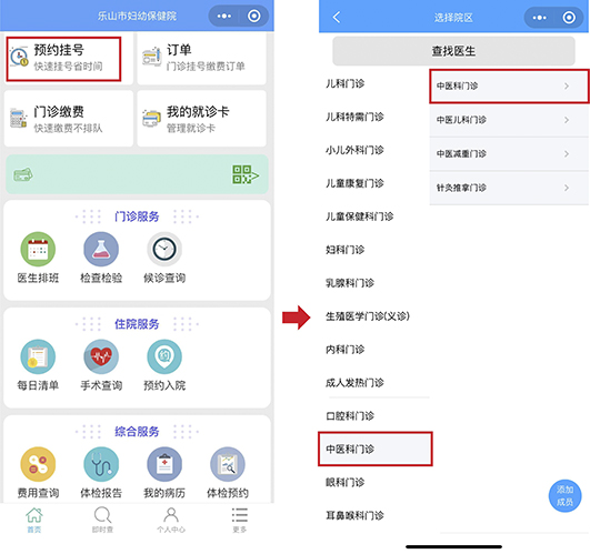 四、選擇“預約掛號”——“中醫(yī)科門診”。