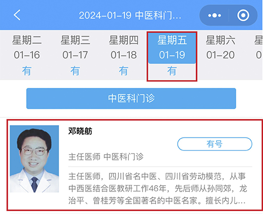 五、選擇日期“星期五”,就可以預約鄧曉舫老師的號了。